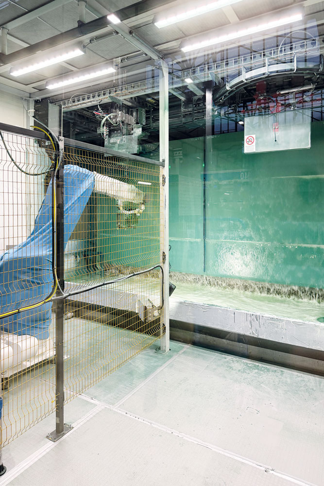 The drying oven with IR lamps designed by Deteco. Ⓒ ipcmThe coating plant is also fitted with a booth water treatment, overspray separation, and sludge management system developed by Kendell, which has significantly improved the cleanliness of the work area and reduced water consumption. Through a floating flocculation system, sludge is efficiently removed from overspray and disposed of. Finally, sensors are distributed throughout the plant to ensure safe, controlled, and efficient functioning.