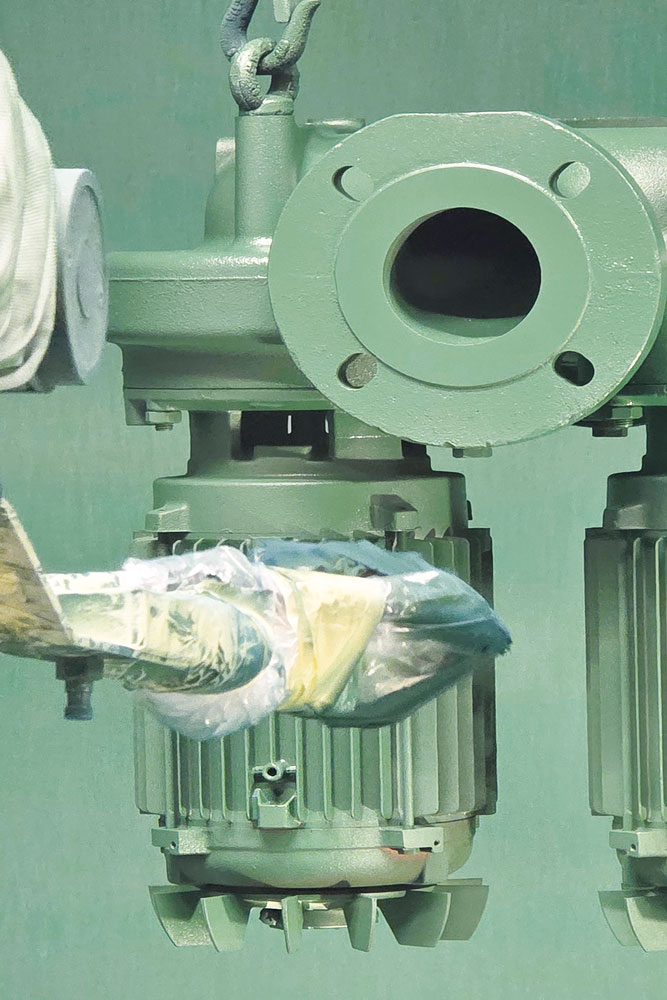 Pumps coated with the last-generation, water-based, two-component DTM product formulated by Sherwin-Williams. Ⓒ ipcm
