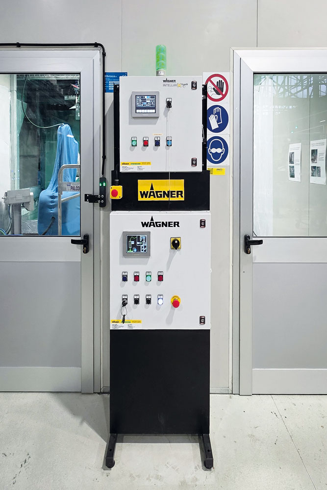 The Wagner Intellimix mixing unit. Ⓒ ipcmLesta’s LEBOT MVA6 robot features advanced software that automatically detects incoming parts, calls up the corresponding coating sequence, and manages colour changes, as it is constantly connected to Wagner’s Intellimix pumping system. A pneumatic spray gun is mounted on the robot’s wrist. This application configuration reduces overspray by 40-50%.