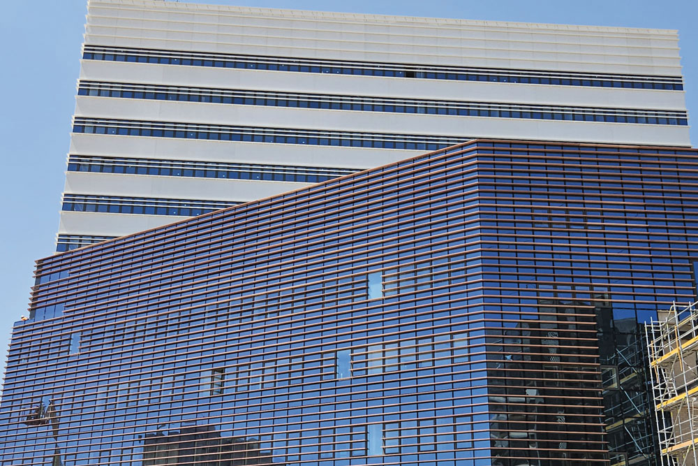 L’Ospedale Vithas Barcelona a Esplugues de Llobregat (Barcellona) è uno dei progetti più recenti realizzati con le vernici Adapta. Ⓒ AdaptaI prodotti formulati con la tecnologia Vivendi SDS presentano un’eccellente resistenza all’esterno, stabilità del colore e ritenzione della brillantezza dopo 36 mesi di esposizione in Florida, soddisfacendo le normative Qualicoat Classe 2, GSB Master e AAMA 2604. Con l’applicazione di uno strato di trasparente, il sistema di verniciatura raggiunge facilmente la conformità con la certificazione Qualicoat Classe 3 e AAMA 2605. In assenza delle prove di esposizione naturale in Florida, i tecnici di Adapta hanno eseguito due test basati rispettivamente sull’arco allo xeno (3.000 ore) e sul QUV B-313 (2.000 ore), misurando una ritenzione della brillantezza del 50%. Inoltre, il sistema a tre strati di Boston è stato testato per la resistenza al fuoco secondo ASTM E84.