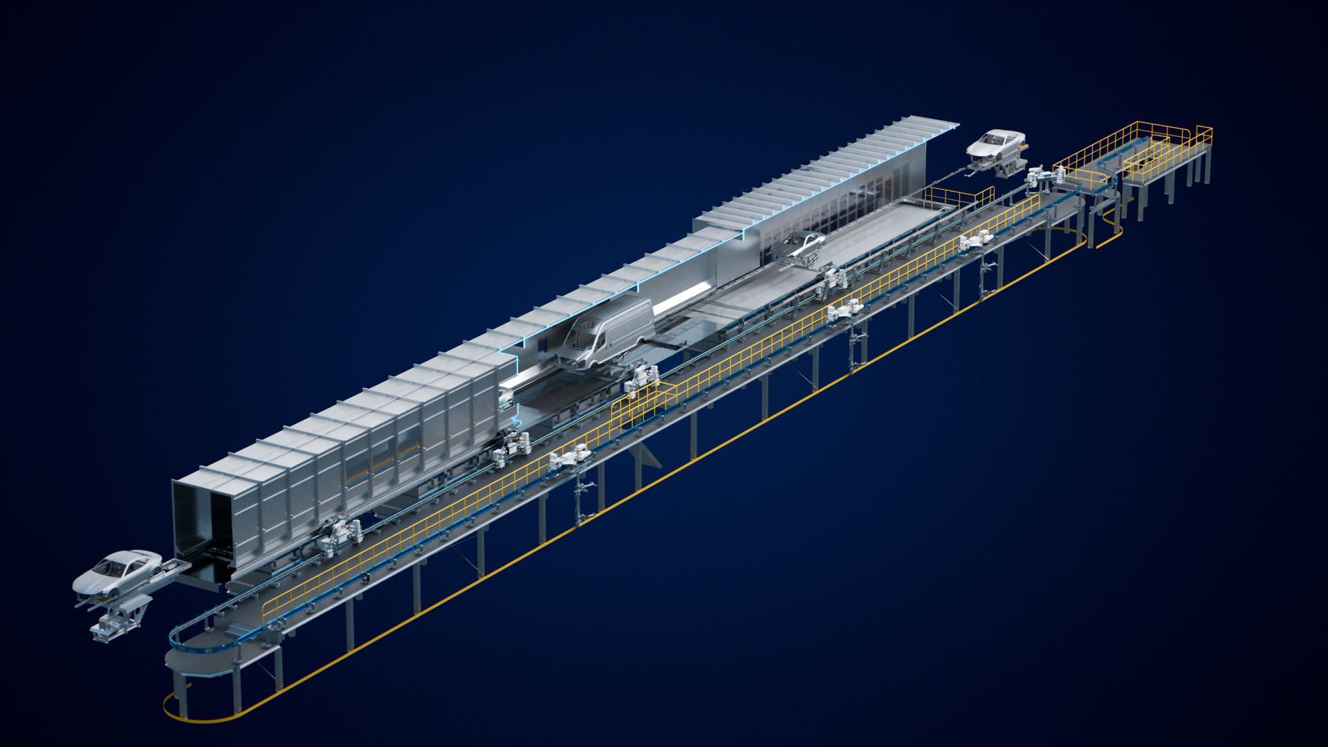 RoDip Ezy succede al collaudato RoDip E, mantenendo intatta l'affidabilità del processo di pretrattamento e verniciatura elettroforetica catodica (CED). Tuttavia, l'intero sistema è stato riprogettato: dal carrello al sistema di rotaie, fino al controllo dell'energia. L'azionamento rotante sfrutta una trasmissione cicloidale, una tecnologia già consolidata e affidabile nei robot industriali di Dürr, che garantisce compattezza e facilità di manutenzione. Il sistema è inoltre caratterizzato da un design standardizzato, adatto a una vasta gamma di pesi, dalle autovetture fino ai furgoni.
